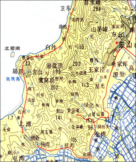 海岸线:地图上表示的海岸线是采用多年大潮的高潮位时形成的海陆分界线。
