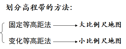 (2)分层设色法:分层设色法是在等高线的基础上根据地图用途、比例尺和区域特征,将等高线划分为不同高程范围带,并以不同颜色普染,通过色相、色调的差异表示地势高低的方法。
