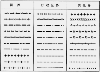 行政区划界的表示原则同国界,符号用不同规格、不同结构、不同颜色的点、线段在地图上表示。
