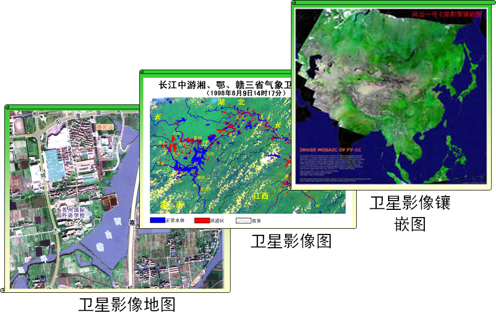 卫星影像地图:在卫星影像上,能够依据数字高程模型 ( DEM ),进行正射纠正,有详细的符号化地理要素的影像图。