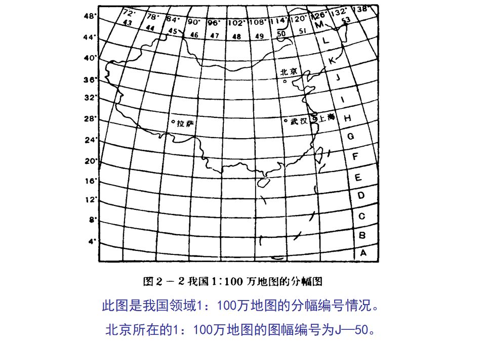 (一)1:100万地图的分幅编号