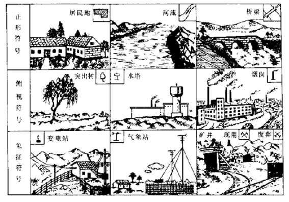 (2)侧视符号:按地物的侧面形状设计而成。符号图形与地物侧视形状相像。