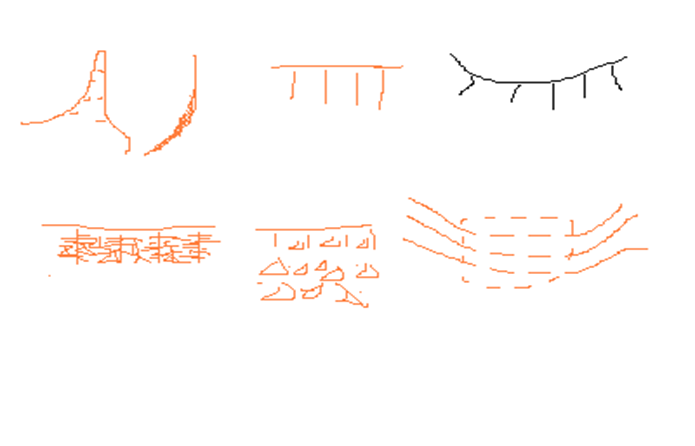 自然地物为棕,人工为黑色,水下为蓝色,若棕色表示天然陡岸,若用黑色表示梯田坎,这样简化了符号种类、形状。