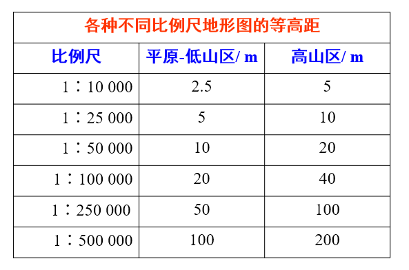 我国大中比例尺地形图等高距是固定的,一般规定在一中比例尺图中只采用一种等高距,称为基本等高距。