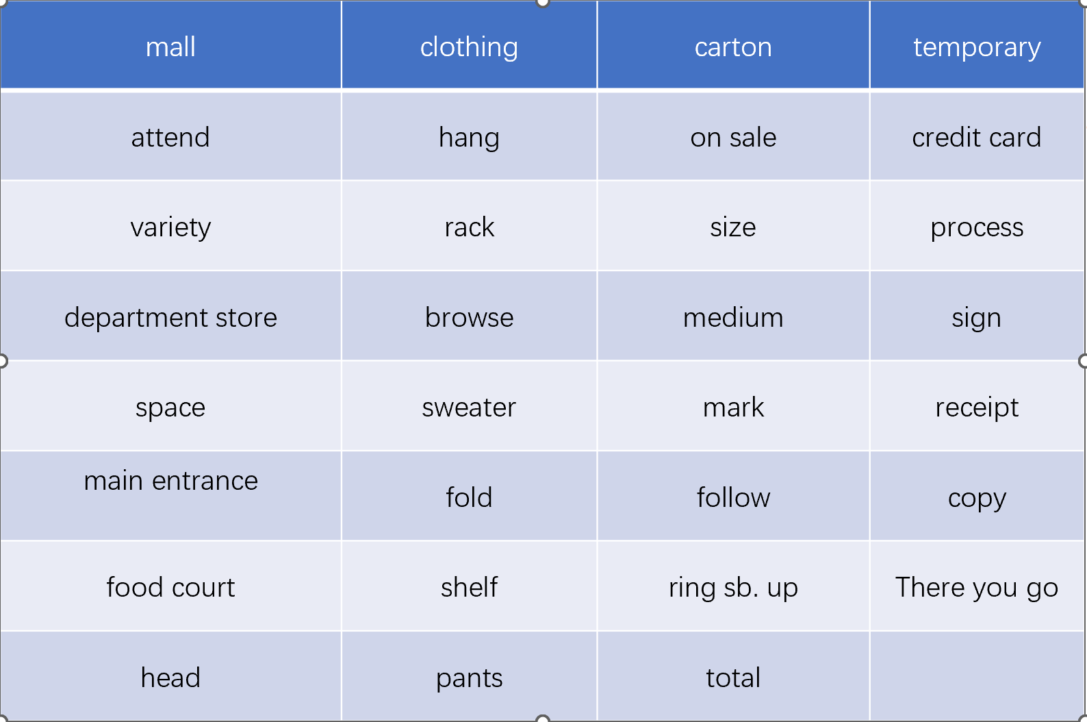 我想买条新裙子,因为下周要参加一个生日聚会,所以趁午饭时间我去了趟购物中心。购物中心里有很多店铺,包括两家大百货公司,这里我一定可以买到自己想要的东西。我找了个车位停好车,便从入口进去了,这里正好临近美食广场。
