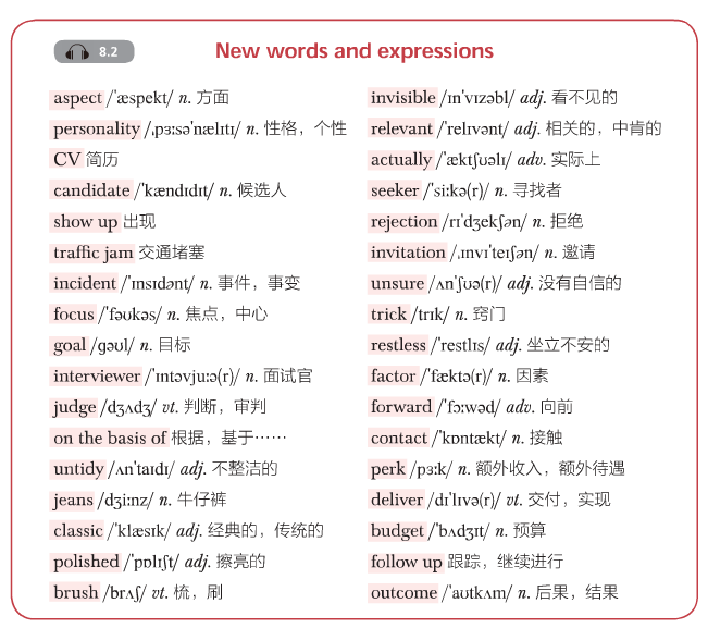 (1)Ifyou were an interviewer and you saw someone come in with shorts and flip flops,would you hire him/her? 如果你是面试官,看到有人穿着短裤和拖鞋来参加面试,你会雇用他/她吗?
