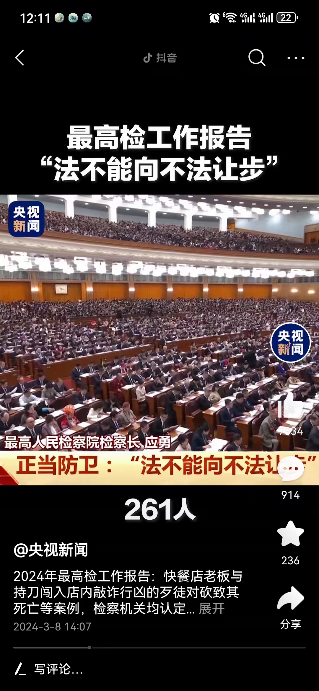 2024年最高检工作报告:正当防卫:“法不能向不法让步”