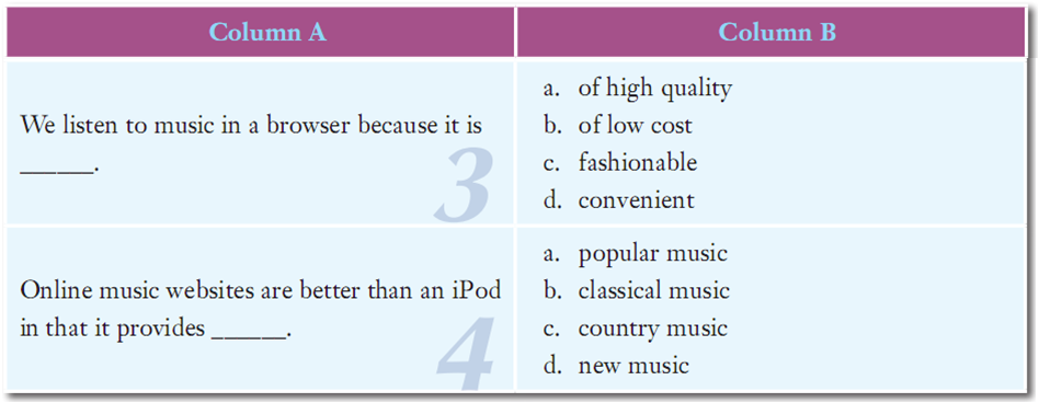 Now, as our lives move online, our listening 6________ are following. The growth of online music websites such as iMeem, Pandora, and Last.fm is just the 7 _______. We listen to music in a 8__________ because it’s convenient — it’s where we also do everything else. And we listen online because the Web 9 ____________ something the iPod can’t: 10______ music.