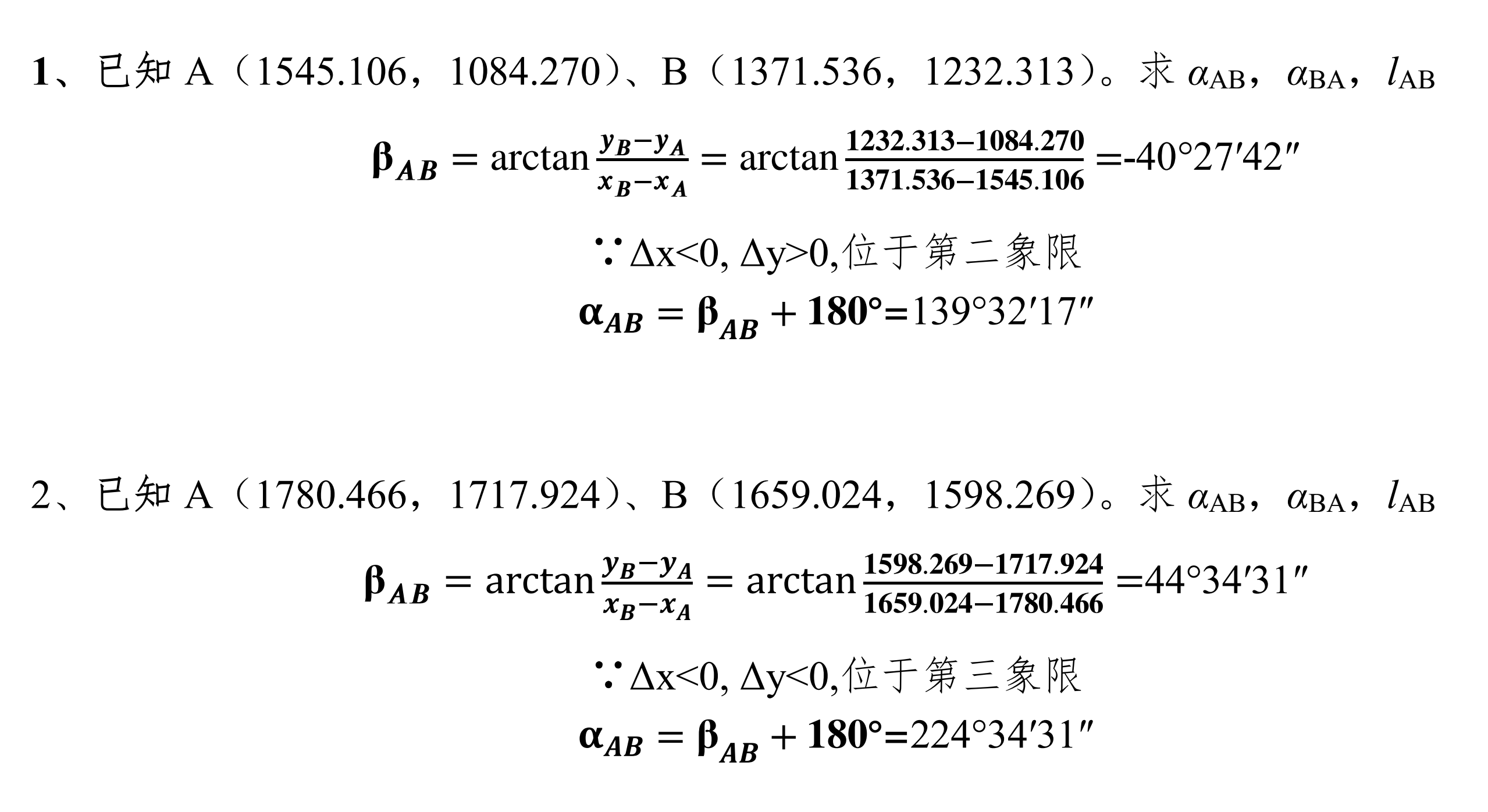 方位角计算—坐标反算