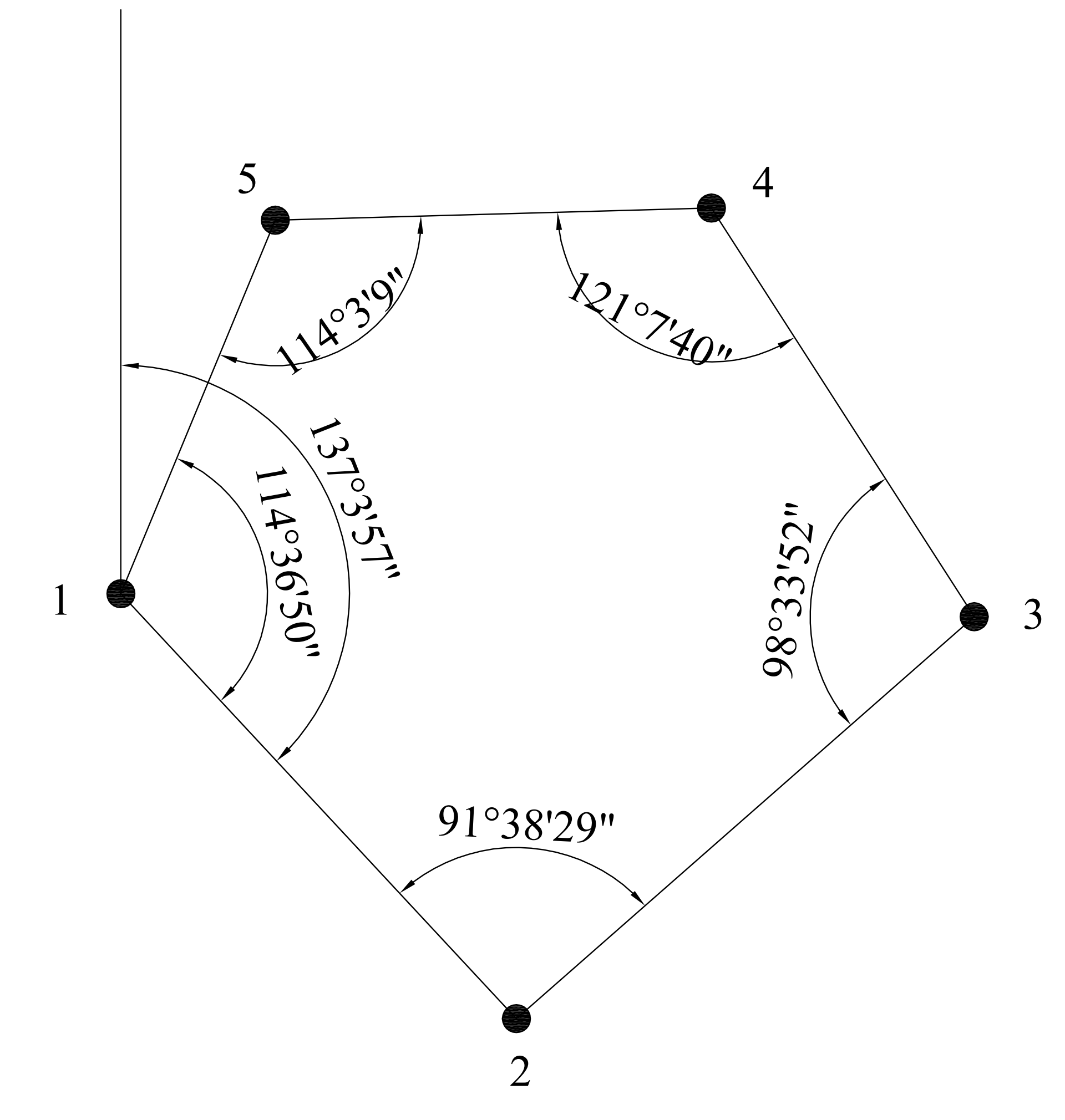 方位角例题2 12边方位角=137°03′57″