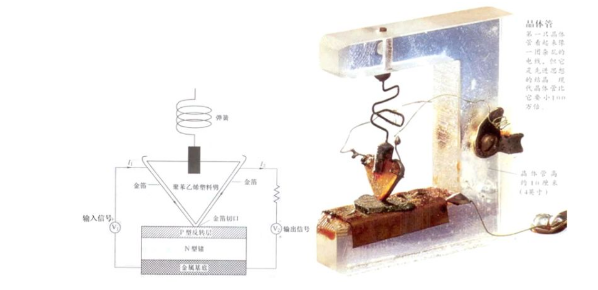 德国的布劳恩发现硫化物的导电性和所加电压的方向有关,即具有单向性。因此,在电子管发明后,利用半导体制作固态放大器的想法一直在科学家的设想中。在20世纪30年代,一个利用溴化钾晶体和钨丝做成的栅极实现了真空管的特性,但是操作频率只有1Hz,无法实用。