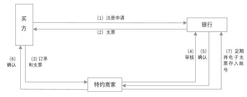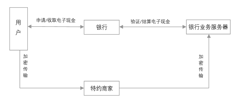 ③ 协议性。电子现金的应用要求银行和商家之间具有协议和授权的关系,电子现金银行负责消费者和商家之间的资金转移。