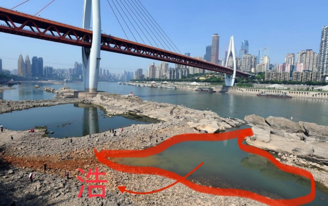 The reef divides the river into two. The outer side is the mainstream of the Yangtze River, while the inner side is wide enough for boats to cross, and over time it became a harbour, known in the dialect as "Hao".