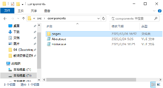 在src\components目录下创建pages目录,用于存放子路由组件。