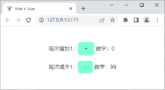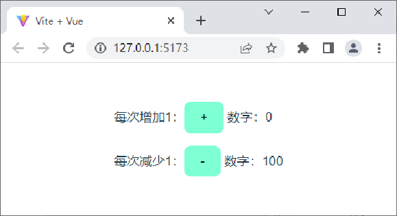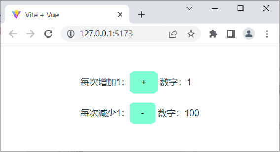 计数器初始页面中定义2个初始数字0和100,定义“+”和“-”2个按钮。每次单击“+”按钮,数字从0自增1;每次单击“-”按钮,数字会从100自减1。