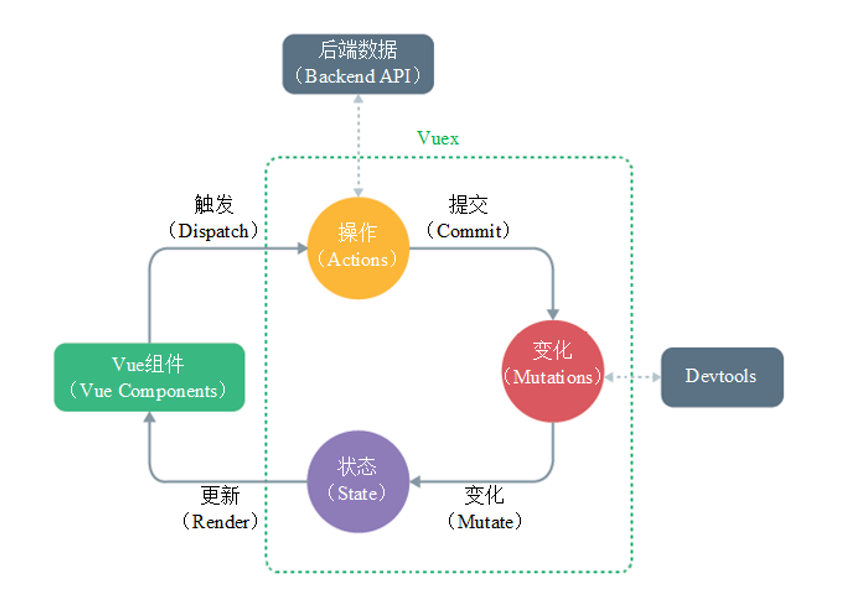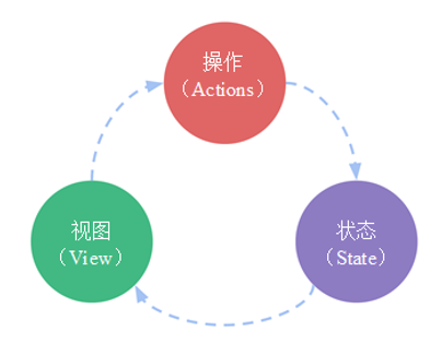 在Vue中,组件的状态变化是通过单向数据流的设计理念实现的,单向数据流是指只能从一个方向修改状态,主要包含以下3个部分。