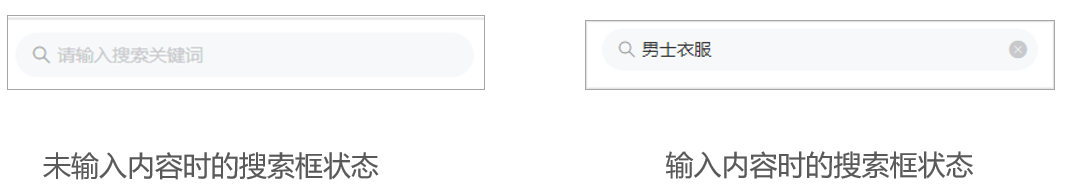 当用户未在搜索框中输入内容时,会默认显示“请输入搜索关键字”;当用户在搜索框中输入内容并获得焦点后,此时搜索框中会显示一个 按钮,如果用户想要搜索内容,则可以单击 按钮;如果用户想要清空输入的内容,则可以单击 按钮。