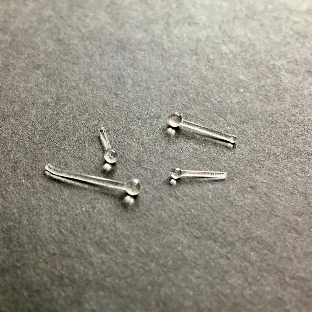 把一根细玻璃棒放在火焰上,当它慢慢融化,末端便会卷成一个小球。把小球掰下来,留一个小把手,方便安装。