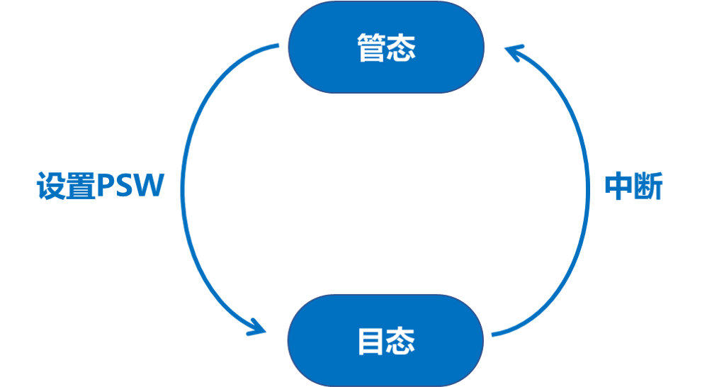 2. 目态:用户程序运行时的状态,较低的特权级别,又称为普通态(普态)、用户态,只有非特权指令能执行。