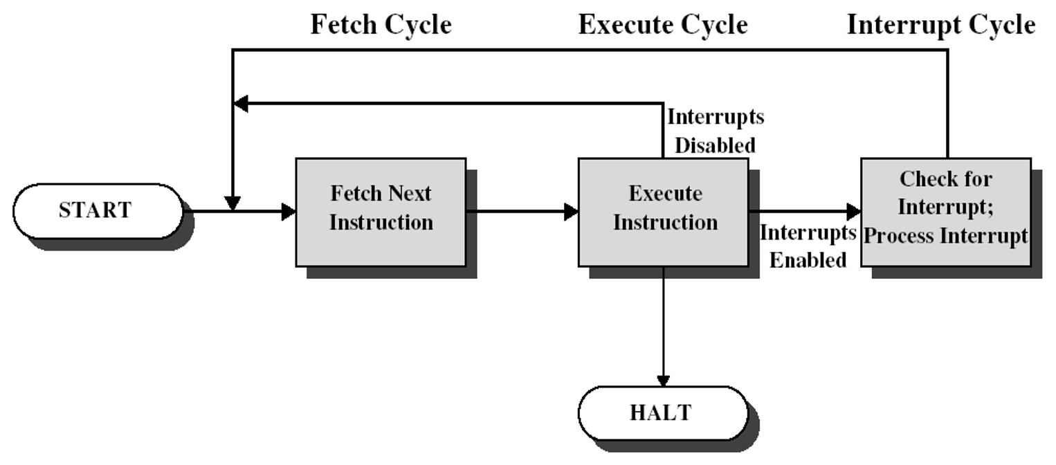 中断机制是操作系统得以正常工作的最重要的手段,它使得OS可以捕获普通程序发出的系统功能调用,及时处理设备的中断请求,防止用户程序中破坏性的活动等。引入中断后,CPU的指令周期如下图。