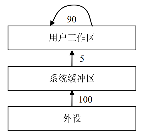 3、【2013年全国统考真题,第27题】设系统缓冲区和用户工作区均采用单缓冲,从外设读入1个数据块到系统缓冲区的时间为100, 从系统缓冲区读入1个数据块到用户工作区的时间为5,对用户工作区中的1个数据块进行分析的时间为90(如下图所示)。进程从外设读入并分析2个数据块的最短时间是( )。
