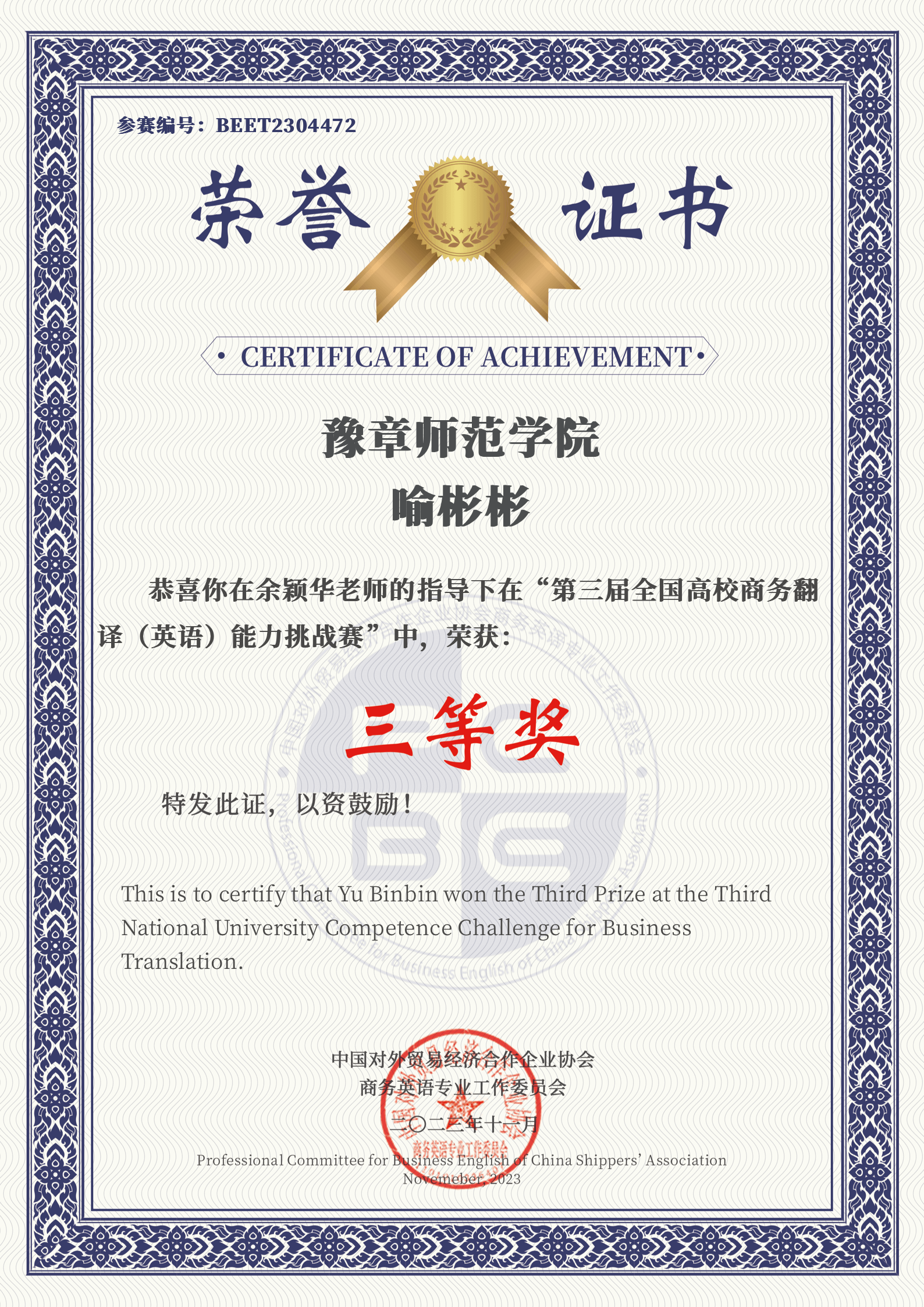 ● 学科竞赛3:第三届全国高校商务翻译(英语)能力挑战赛