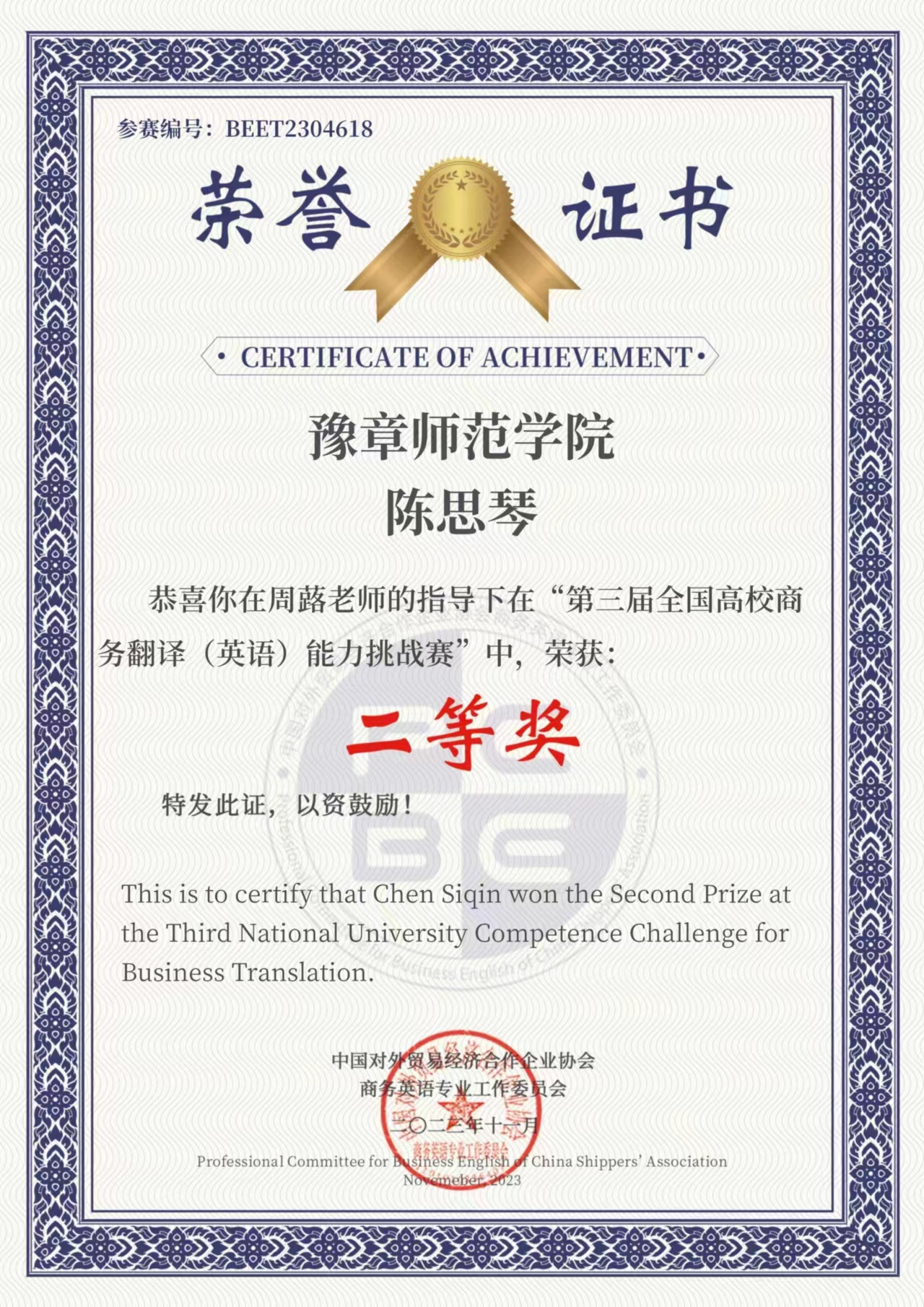 ● 学科竞赛2:第二届全国高校商务翻译(英语)能力挑战赛
