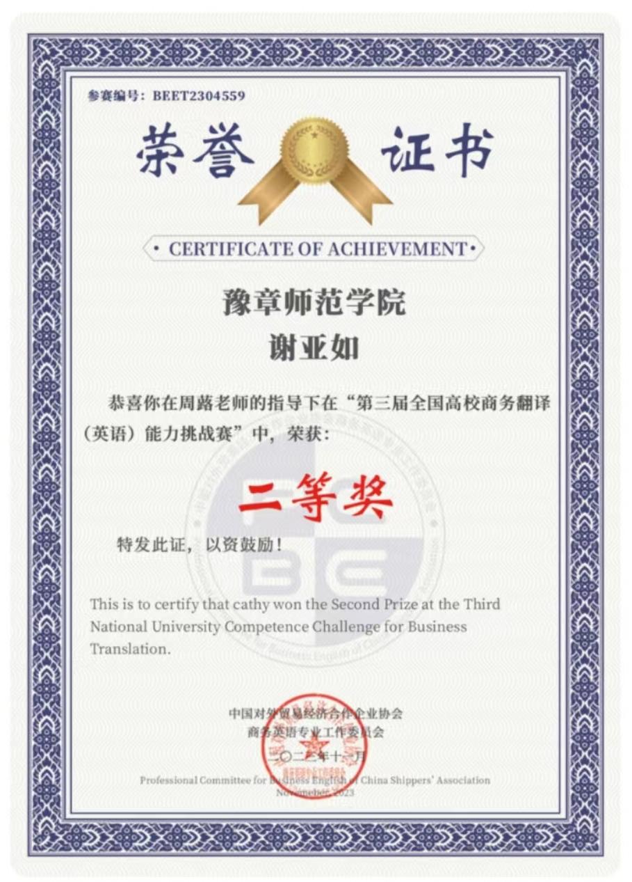 ● 学科竞赛4:第五届BETT全国商务英语翻译大赛