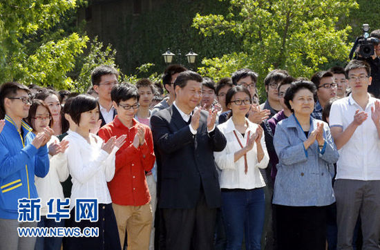 2014年5月4日,中共中央总书记、国家主席、中央军委主席习近平在北京大学考察。这是习近平在校园观看北大师生纪念五四运动95周年青春诗会。