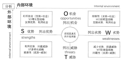 SWOT分析法是一种常用的战略规划工具,它将与研究对象密切相关的各种主要内部优势、劣势和外部的机会和威胁等各种因素相互匹配起来加以分析,从而得出相关的决策性结论。运用这种方法,可以对研究对象所处的情景进行全面、系统、准确的研究,从而根据研究结果制定相应的发展战略、计划以及对策等。SWOT分析法能够帮助我们确定优先考虑的细分市场,并且为如何开发细分市场提供战略性指导意见。