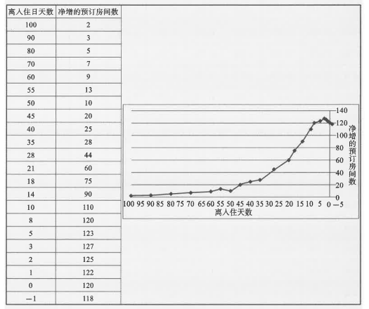 根据以上案例,如果酒店想通过提前预订这个限制条件实现商务散客与休闲 度假散客客源结构的合理搭配,在提前预订时间点之前预订客房的价格较低,在提 前预订时间点之后的价格则较高,从而达到商务散客和休闲度假散客两个市场执 行不同价格标准的效果。那么这个提前预订的时间点设置为提前多久才是合适的呢?