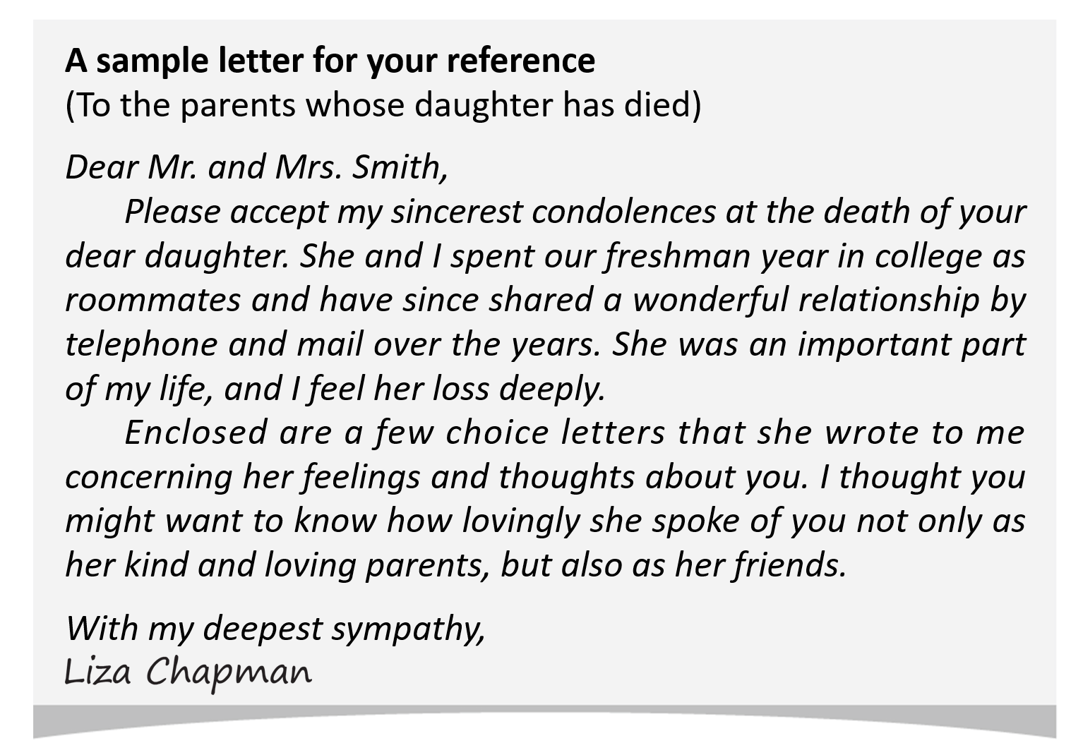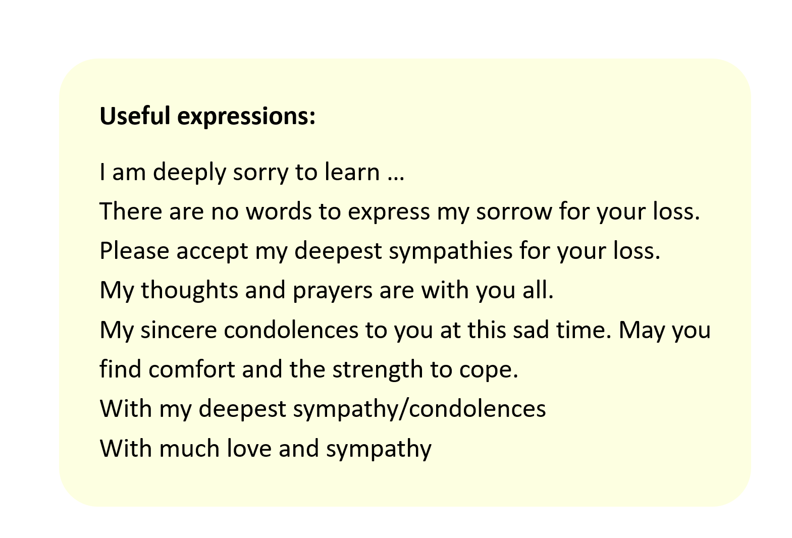 condolence as mentioned in the Tips.