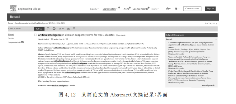 (6)如果想要查看某篇论文的文摘记录或详细记录,只要单击相应论文篇名下的Abstract或Detailed超链接,有关信息即可随即显示。如图4.12所示为某篇论文的Abstract(文摘记录)页面。