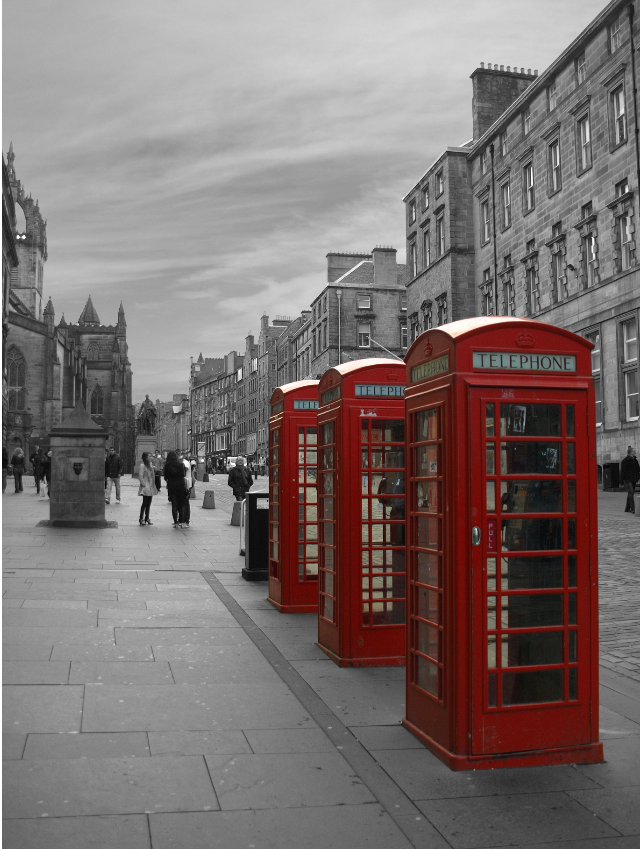 透视,顾名思义即“透而视之”,是人眼观看自然物象的一种空间规律。我们日常看到的物象都是由透视现象形成的客体,双眼视点则是主体,而所感知的画面是透视现象的载体,在看与被看的关系中,这三个要素缺一不可。建筑速写中的透视,是绘画者把视觉透视变化中的规律运用于写生及创作上的一种表现技巧,也是建筑绘画中最重要的空间表现模式之一。人与人之间由于视角、位置等的差异,所看到的建筑形体在高度、角度、方向等诸多方面都会因透视的不同而发生变化,简而言之,高度相同的两个建筑,距离观察者越远显得就越低,反之就显得越高,这就是一种常见的透视现象。(图1 图中相同或相似高度的电话亭与建筑物由于透视作用产生了近大远小的视觉效果、图2 建筑速写中的近大远小、近高远低、近宽远窄)
