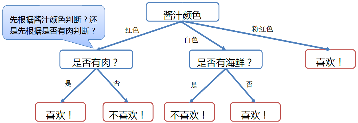– 如果根据一个属性做判断,样本仍然有若干种情况,则该属性不应该出现在决策早期。