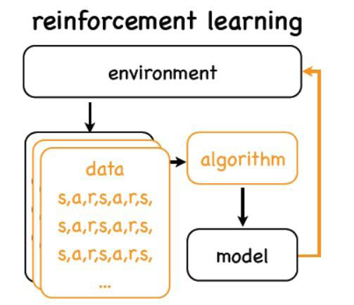 经过算法计算后,模型把计算结果返回给“环境”,这时环境才给我们“奖赏”,即动作产生的后果。