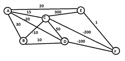 旅行商问题:从A点出发到达F点,如何行动,使得整体路程最短?
