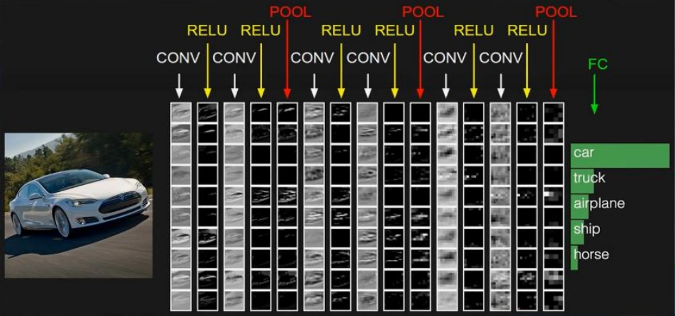 • 整个视觉神经网络分为多层,实现多种特征的提取和抽象。层级越高,所得到的信号越抽象、越密集。