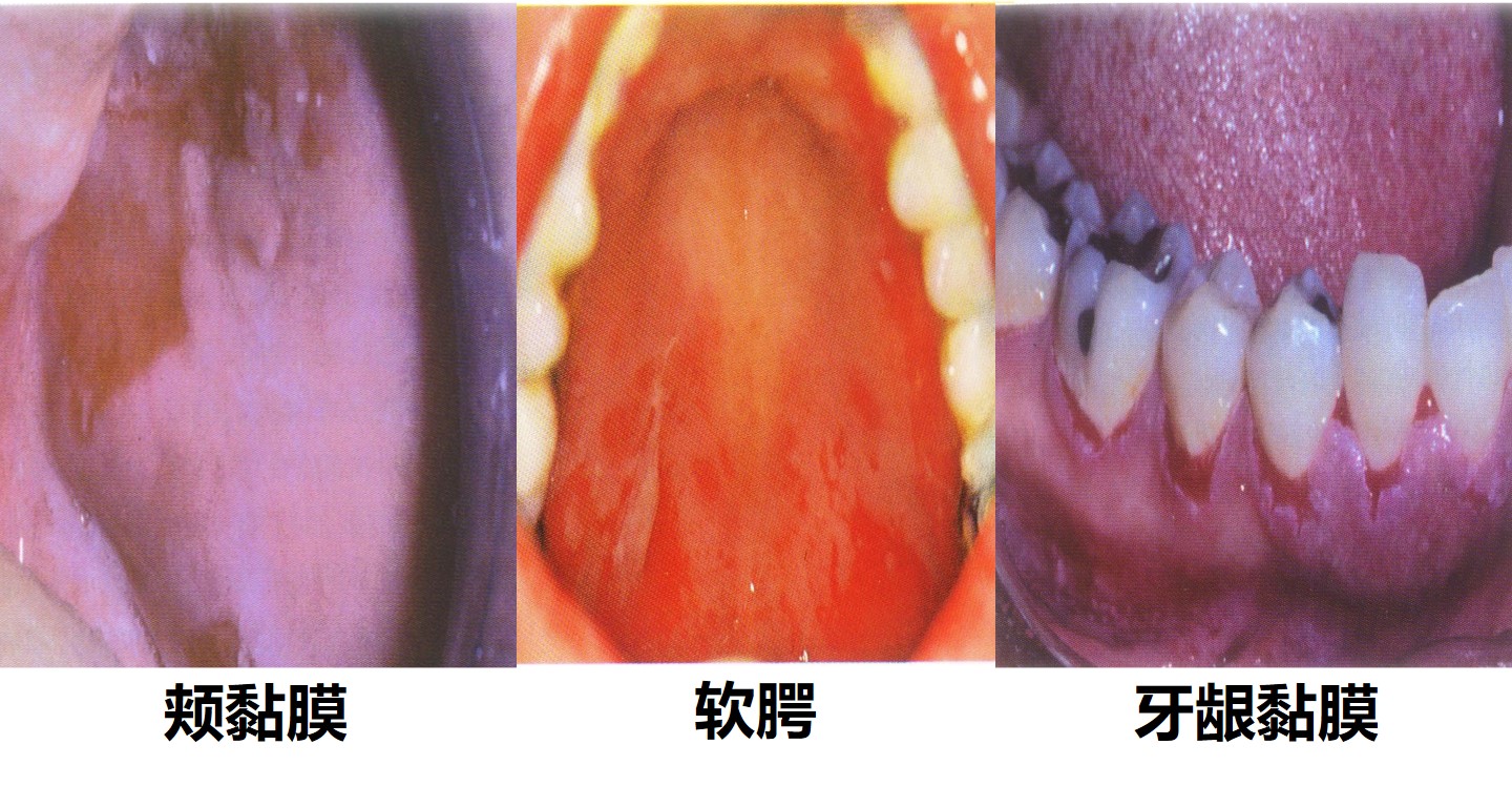 寻常性、增殖性、落叶性及红斑性天疱疮,多数口腔粘膜为首发;