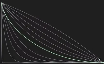 这个牛顿和伯努利解出的最快路径被称为最速降落曲线(brachistochrone curve),来源于希腊语中的“最短时间”,根据这篇文章的主题相信大家也猜到了,这个路径就是旋轮线的一段,下面的动图用实验来展示这个问题: