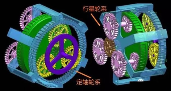 机械中采用具有两个自由度的差动行星轮系来实现运动的合成和分解。这是行星轮系独特的功用。