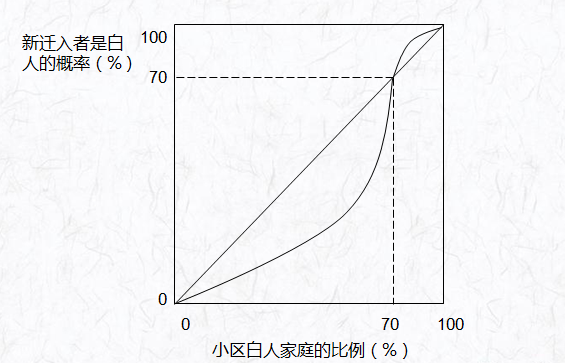 诺贝尔经济学奖获得者托马斯·谢林认为:假如一个地方的黑人居民的比例超过一个临界水平,这个比例很快就会上升到接近100%;假如这一比例跌破一个临界水平,这里很快就会变成白人社区。