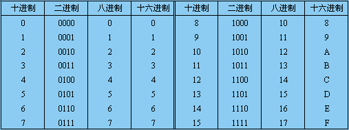 4. 二进制数与十六进制数的相互转换(四位一组)