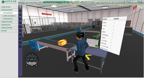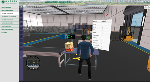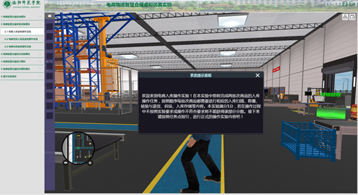 操作步骤四:阅读货物验收任务面板提示,按照任务要求进行实验操作,将后方托盘上的货物进行验收处理。