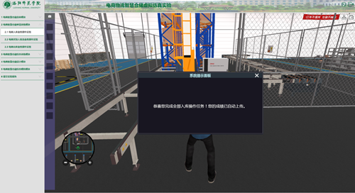操作步骤十:重复操作步骤五至九,完成两次入库任务后,即可完成实验,获得实验分数。