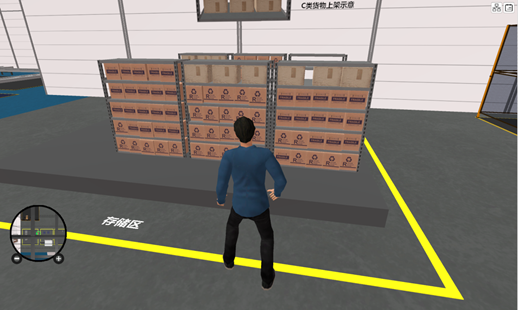 操作步骤二:通过订单数据分析,对三类不同货物进行A、B、C分类,制定货物的储位分配计划。根据实验要求,对货物A、货物B、货物C进行拆零处理,将整托货物放置在拆零机入口,将拆零完毕的整箱货物上架至前方存储区货架中。(注最上层货架不能够存储,需按照墙上的存储规则进行存储。)