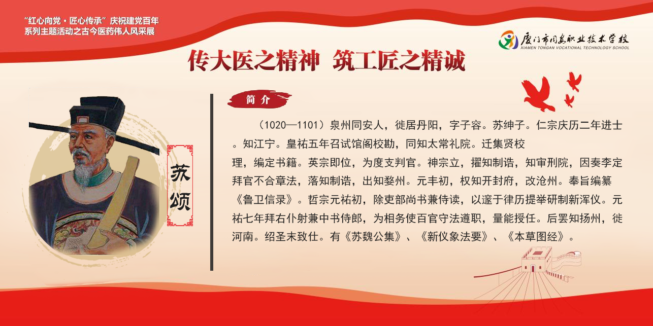 (1020—1101)泉州同安人,徙居丹阳,字子容。苏绅子。仁宗庆历二年进士。知江宁。皇祐五年召试馆阁校勘,同知太常礼院。迁集贤校理,编定书籍。英宗即位,为度支判官。神宗立,擢知制诰,知审刑院,因奏李定拜官不合章法,落知制诰,出知婺州。元丰初,权知开封府,改沧州。奉旨编纂《鲁卫信录》。哲宗元祐初,除吏部尚书兼侍读,以邃于律历提举研制新浑仪。元祐七年拜右仆射兼中书侍郎,为相务使百官守法遵职,量能授任。后罢知扬州,徙河南。绍圣末致仕。有《苏魏公集》、《新仪象法要》、《本草图经》。