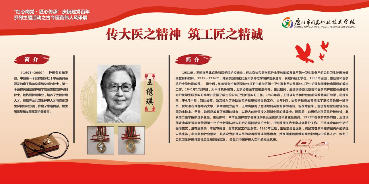 (1908~2000),护理专家和学者。中国第一个获得国际红十字会委员会颁发的南丁格尔奖章和奖状的护士,第一个获得英国皇家护理学院荣誉校友称号的护士。她热爱护理事业,培养了大批护理人才。在培养公共卫生护理人才与宣传卫生保健知识方面,作出了卓越贡献。她主张恢复和发展高等护理教育。