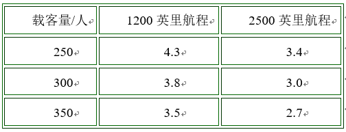 波音747是一种载客量较大的飞机。1975年,该种飞机航行距离不同、载客量不同情况下的成本(单位:美分/人·英里)见下表: