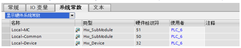 在该表格中可单击该常量符号,并拖放到其它编辑器中。例如,可以将一个系统常量分配给程序编辑器中的某个指令,或创建一个系统常量作为其它设备中的用户常量。